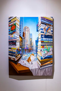 이경미는 작품에 고양이 나나를 담아 자신을 대변해왔다. 힘겨운 삶 속에서 키우고 있던 수컷 고양이 나나는 따뜻한 온기를 품은 존재였다. 이경미의 작업에서 공간감은 중요한 화두 중 하나인데 맞춤 제작한 우드 패널에 작업해 원근감을 극대화한다든지, 저부조를 만들어 입체감을 살린다.